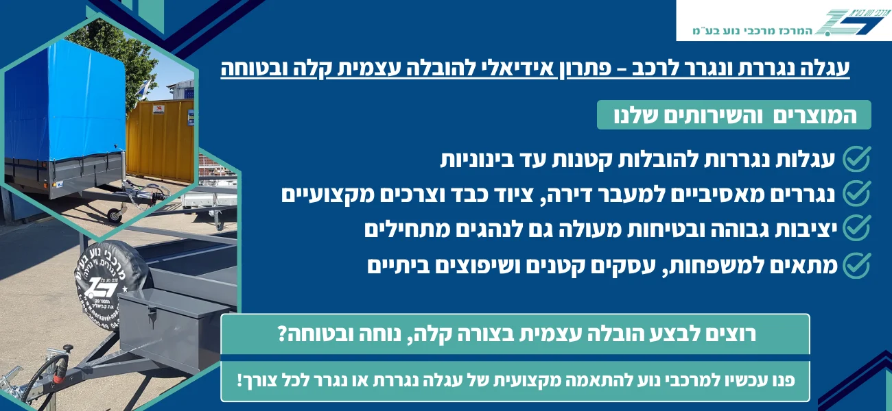 בין אם אתם מחפשים עגלה קטנה לשימוש ביתי או נגרר מקצועי לעסק, במרכבי נוע תמצאו את הפתרון המושלם – באיכות ללא פשרות ובשירות אישי ומקצועי שמלווה אתכם לאורך כל הדרך.